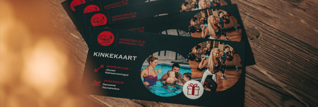 Kinkekaardi juurde saad soovi korral lisatasu eest valida Reval-Sport logoga joogipudeli (15 €), saunalina (15 €) või treeningrätiku (10 €), T-särgi (15 €) või spordikoti (10 €). Kõiki asju saad näha ja katsuda meie administratsioonis.